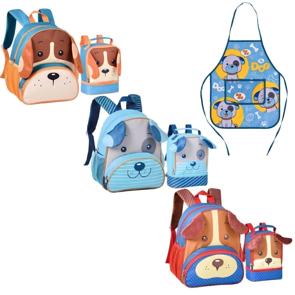 Kit Mochila Costas Lancheira Avental Pets Cachorro